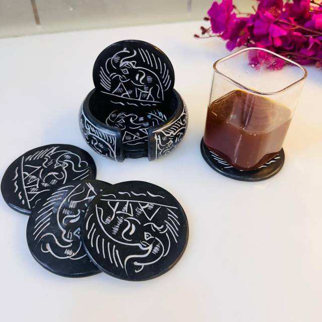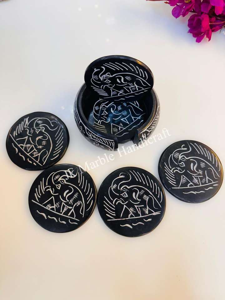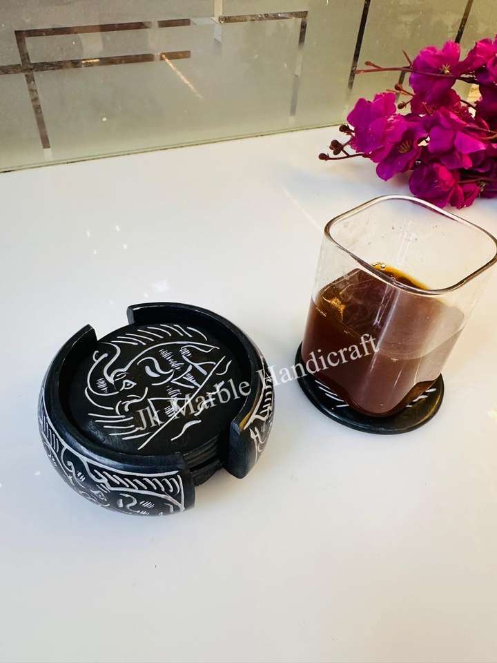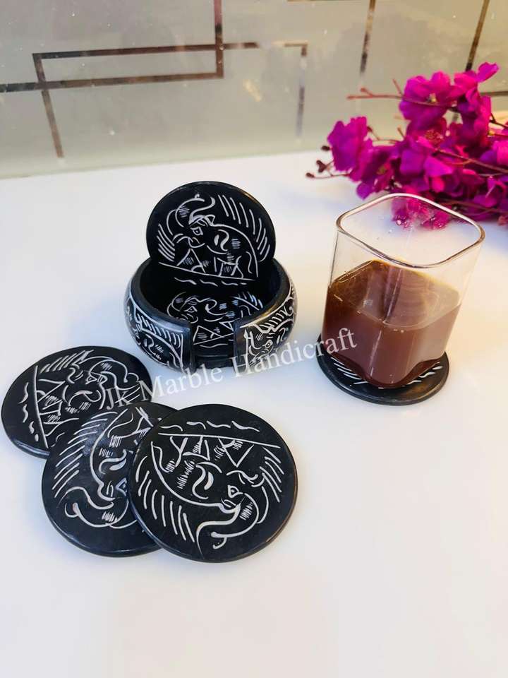 ชุดจานรองแก้วหินอ่อน 6 ชิ้น งานฝีมือสวยงาม พร้อมที่วางหินเคลือบสีคุณภาพสูง สำหรับชา ของตกแต่งครัวสไตล์ศาสนา