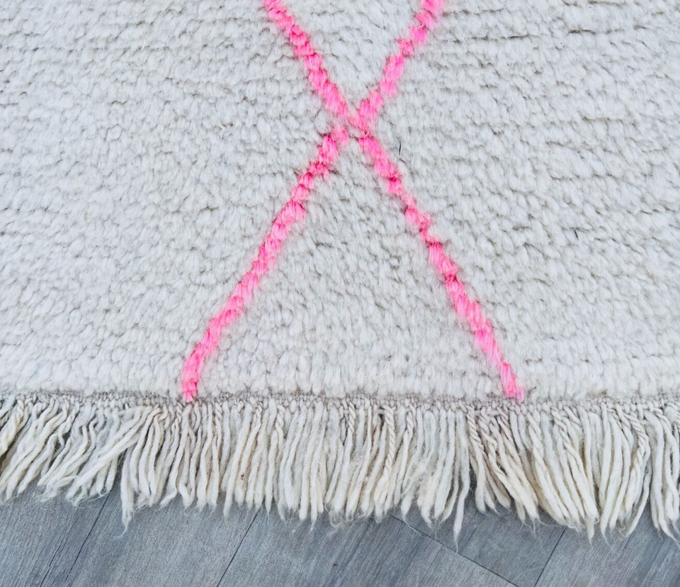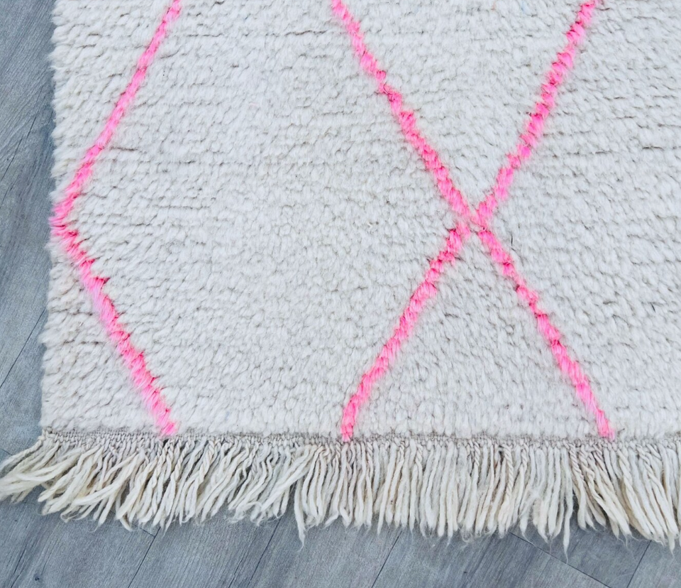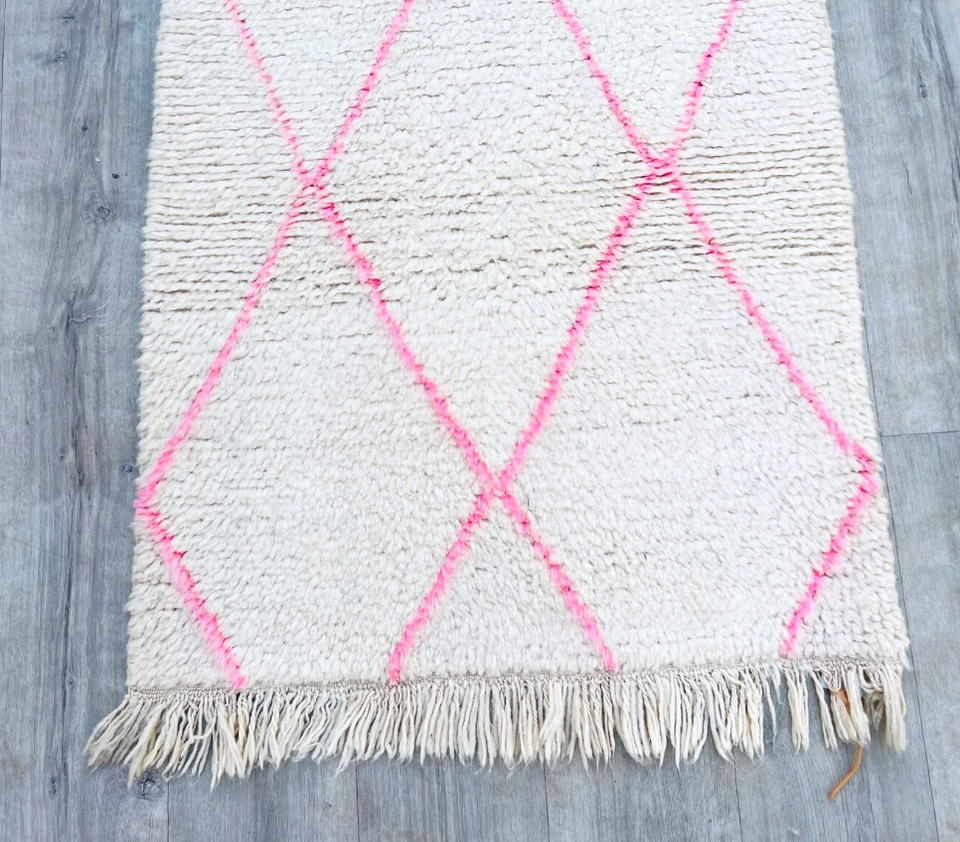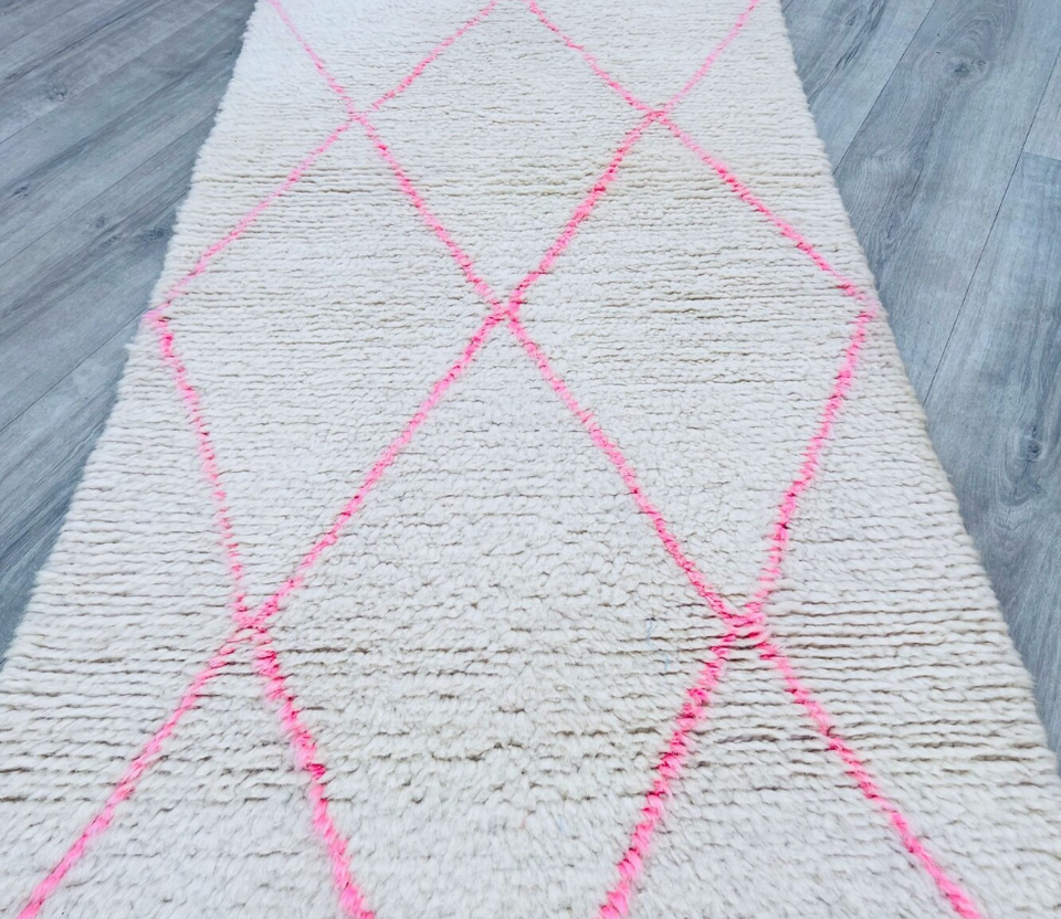 ทำด้วยมือสีขาวและสีชมพู Beni Ourain RUNNER