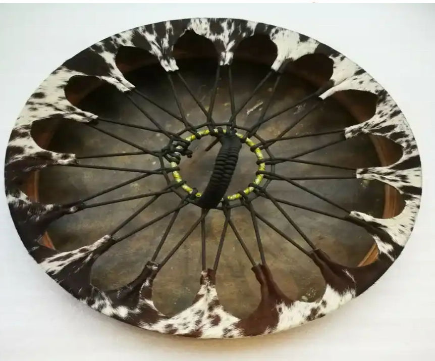 กลองชามานิกวาดลายสวยงาม โครงไม้แบบดั้งเดิม สไตล์วินเทจ เหมาะสำหรับการทำสมาธิและพิธีกรรม