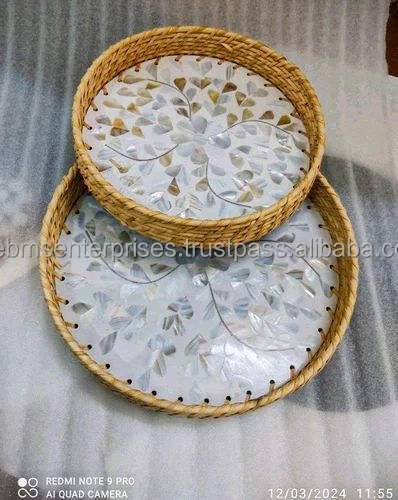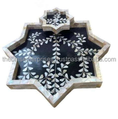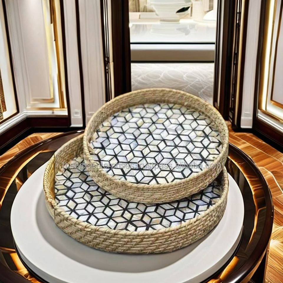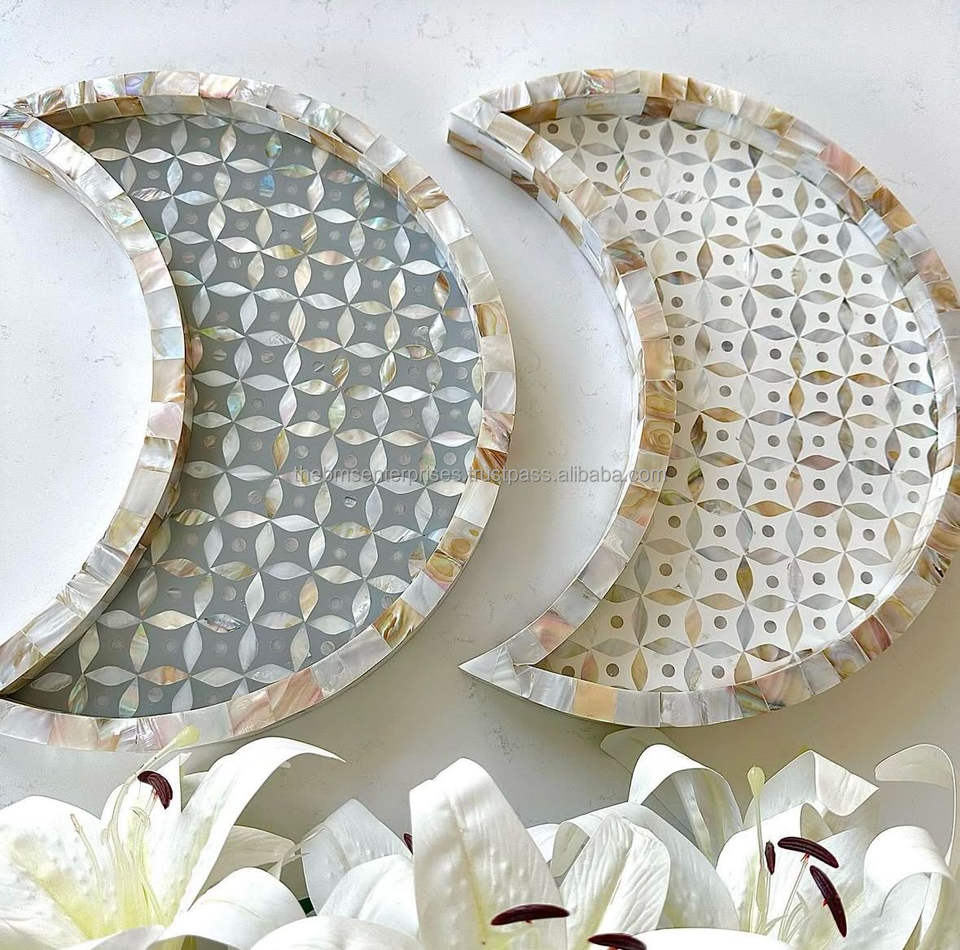 ถาดเสิร์ฟขนมและช็อคโกแลตลายดวงตาสีเทาฝังมุกดีไซน์ทันสมัยสวยงาม