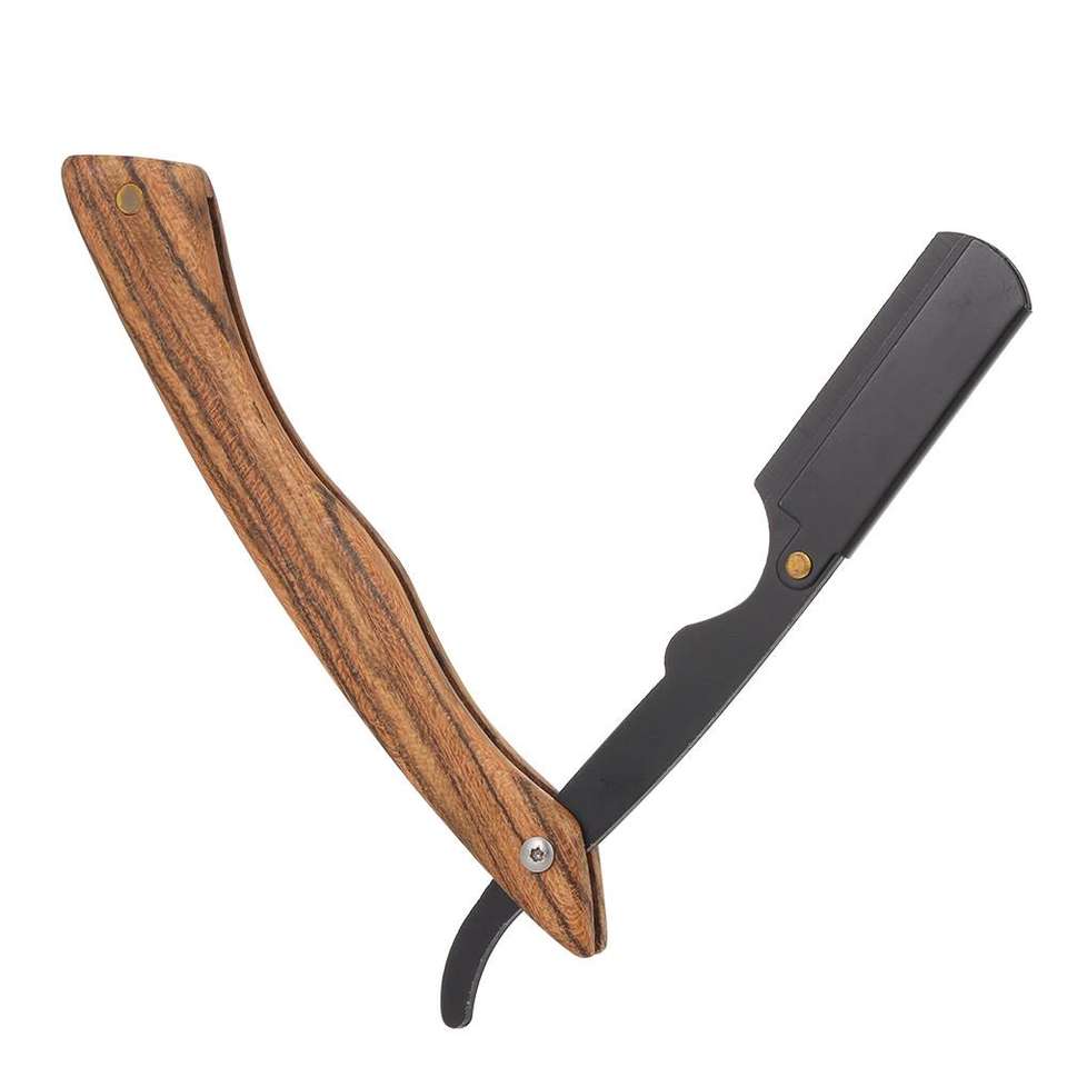อุปกรณ์ดูแลความงามมีดโกนหนวดตรงพับได้,มีดโกนพร้อมด้ามจับไม้สำหรับช่างตัดผมมีดโกนสีดำใบมีดเดี่ยว