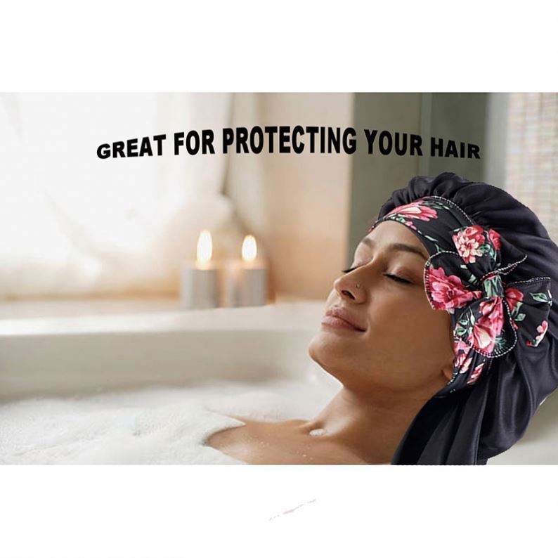 หมวกซาตินดีไซน์สวยงามสำหรับสุภาพสตรีผมยาว หมวกคลุมผมสำหรับนอน ปรับสายรัดได้ ใช้ได้ทุกวัน ใช้กลางแจ้งได้ จัดส่งรวดเร็ว ขายส่งทุกฤดูกาล