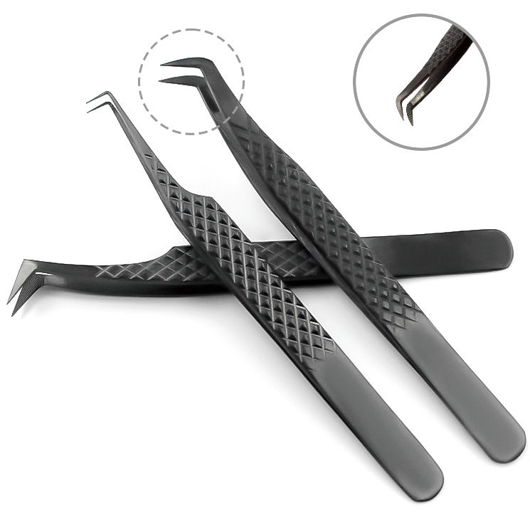 อุปกรณ์ต่อขนตาคุณภาพสูง ทนทาน ผลิตจากสแตนเลสสตีล ปลายเฉียงสีดำ ป้องกันไฟฟ้าสถิต ปลายหยัก ขนาด 10 มม. รุ่น HN