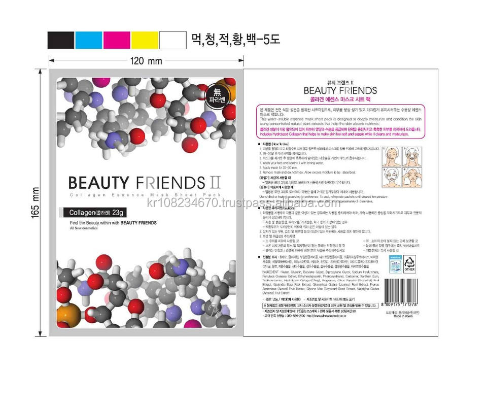 แผ่นมาส์กหน้าบำรุงผิวหน้าสูตรคอลลาเจนเคมีผสมทับทิม ช่วยลดเลือนริ้วรอย ผลิตโดยบริษัท Beauty Friends รับผลิตแบบ OEM และ Private Label