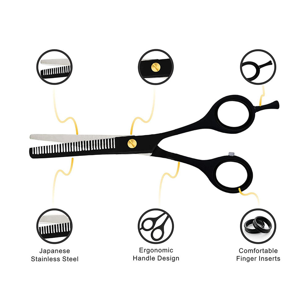 กรรไกรตัดผมแบบบางเคลือบสีดำปรับได้