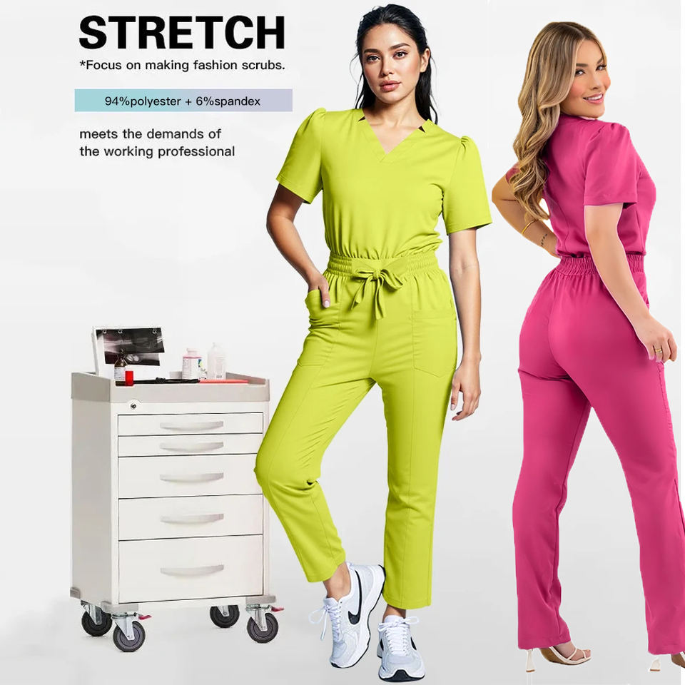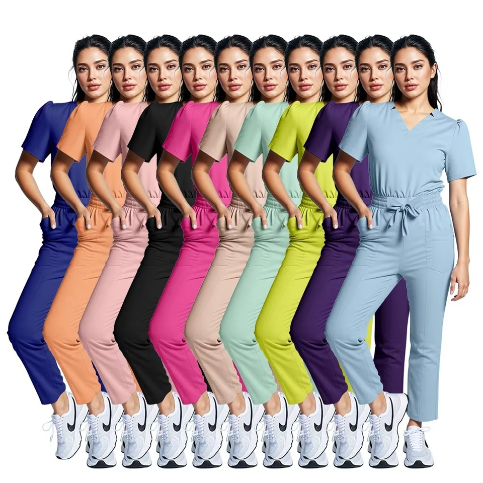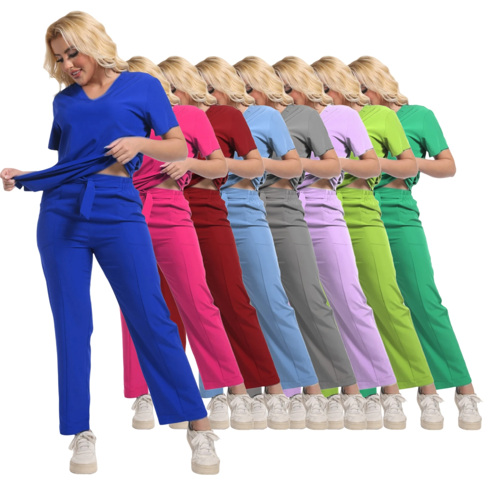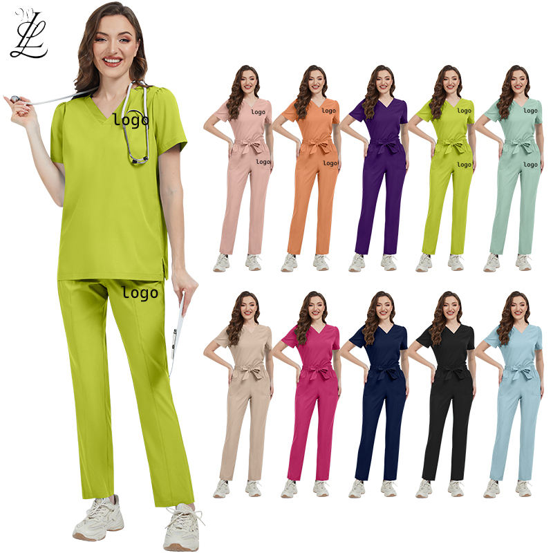 Beauty Salon 2025 Women Medical Nursing Scrubs Suit Custom Logo Doctor V-Neck Straight Tops Pants Summer Hospital Uniforms Set