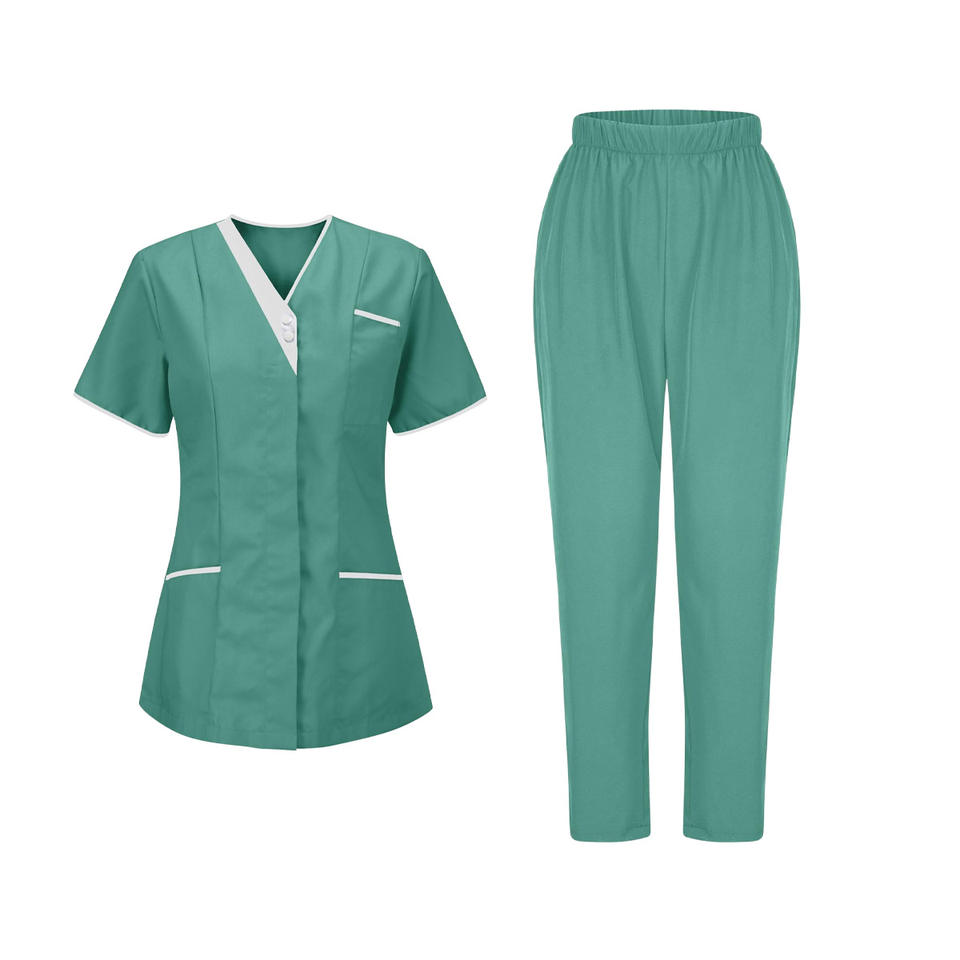 ชุดสครับร้านเสริมสวยคุณภาพสูง โลโก้สั่งทำได้ ยืดหยุ่นได้ เหมาะสำหรับพยาบาล ช่างเสริมสวย และร้านขายสัตว์เลี้ยง