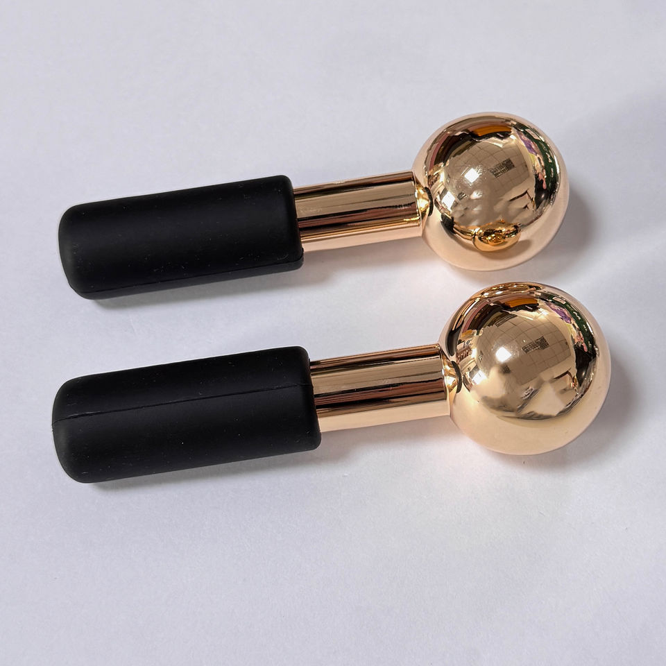 ลูกกลิ้งน้ำแข็งทองคำสำหรับดูแลผิวหน้า พร้อมหัวโลหะสำหรับนวดหน้า