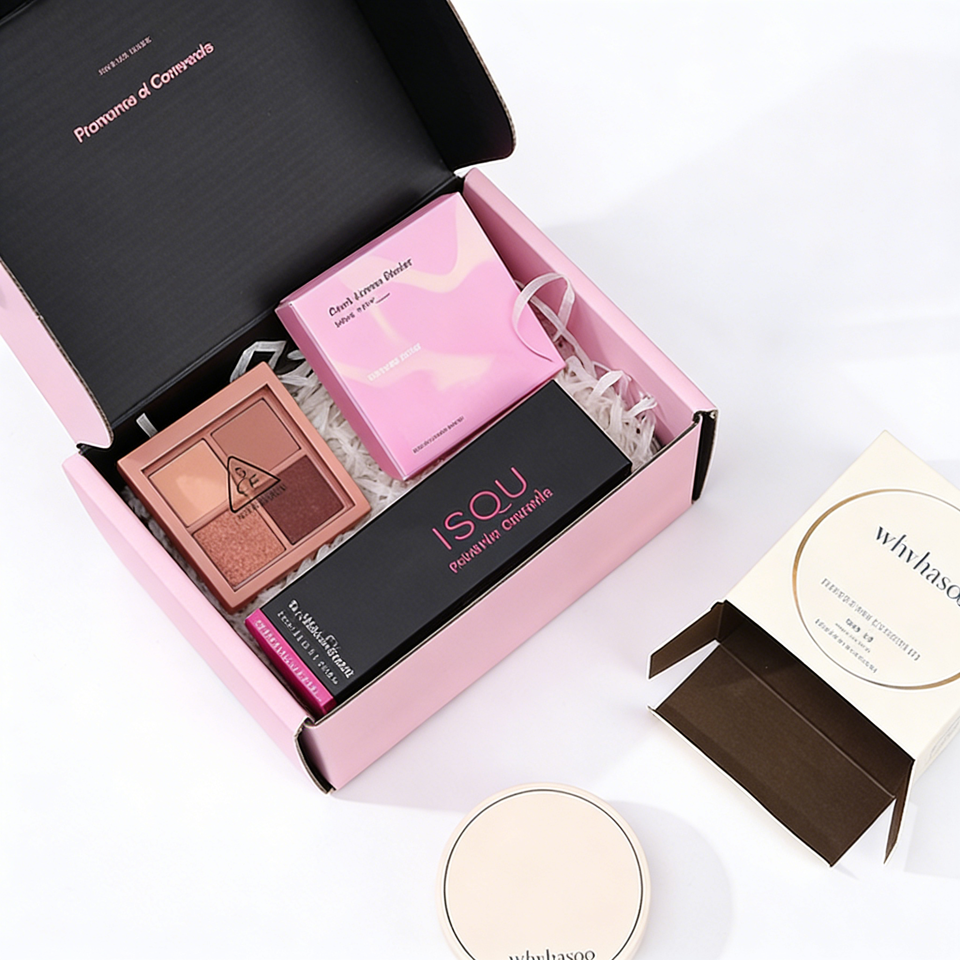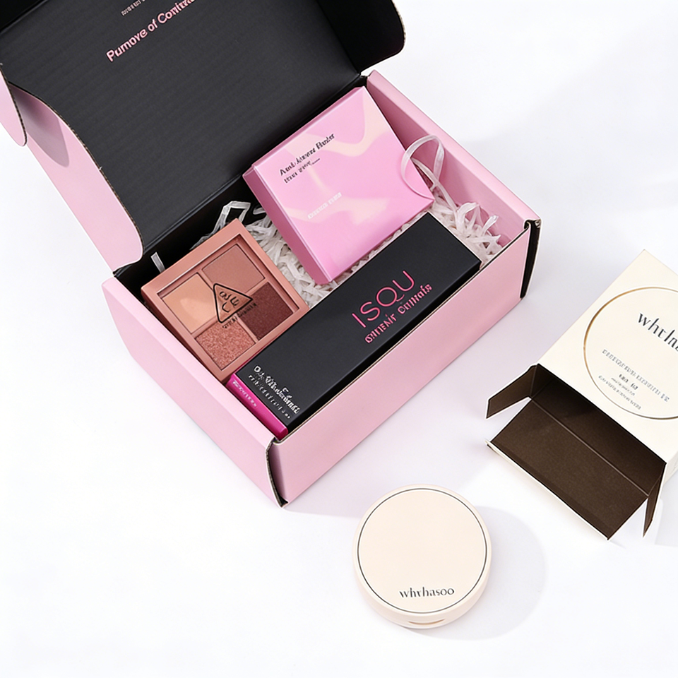 กล่องบรรจุภัณฑ์แบบพับได้สำหรับกล่องสมัครสมาชิกความงาม ทำจากกระดาษลูกฟูกชนิด B และ E พร้อมกล่องของขวัญด้านในแบบแข็ง สามารถปรับแต่งได้