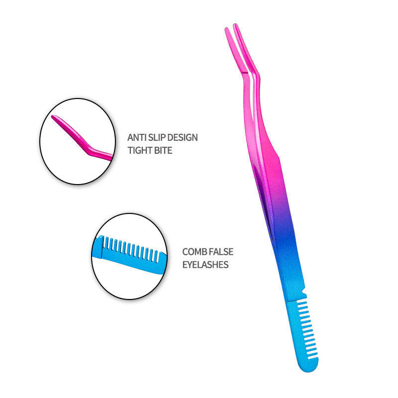 ชุดแหนบสแตนเลสเพื่อความงามที่มีปลายแหลม90องศาสำหรับการต่อขนตา