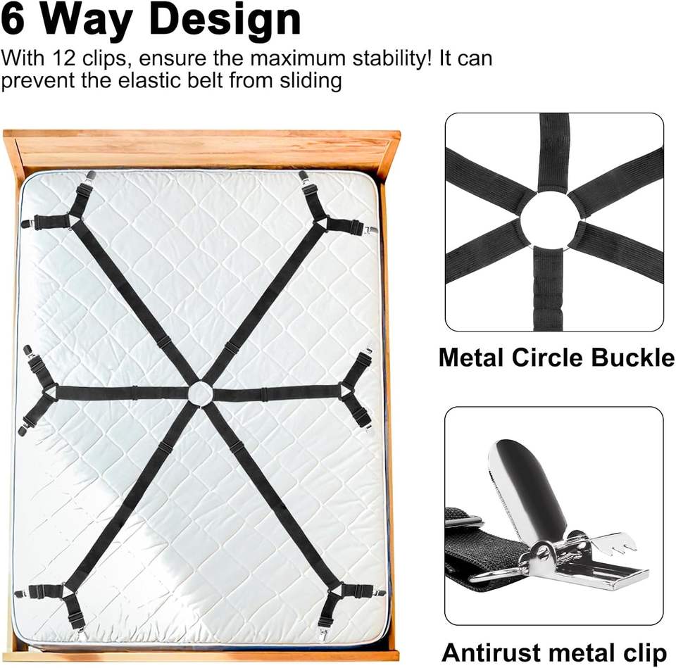 ที่ยึดผ้าปูที่นอนแบบยืดหยุ่น 12 คลิป ที่ยึดที่นอน คลิปยึดผ้าห่ม สายรัดกันลื่น