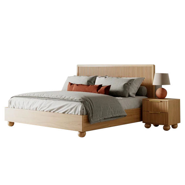 เตียงไม้สักแท้สไตล์โมเดิร์น งานไม้ธรรมชาติ ปรับแต่งขนาดและสีได้ สำหรับห้องนอน โรงแรม และวิลล่า