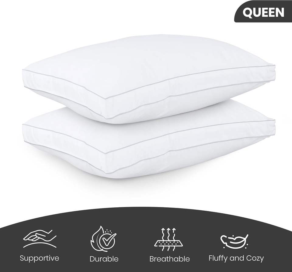 ชุดเครื่องนอน หมอนหนุนสำหรับนอน ขนาดควีนไซส์ สีขาว ชุด 2 ใบ นุ่มฟู พร้อมไส้ใยสังเคราะห์ ระบายความร้อน คุณภาพระดับโรงแรม