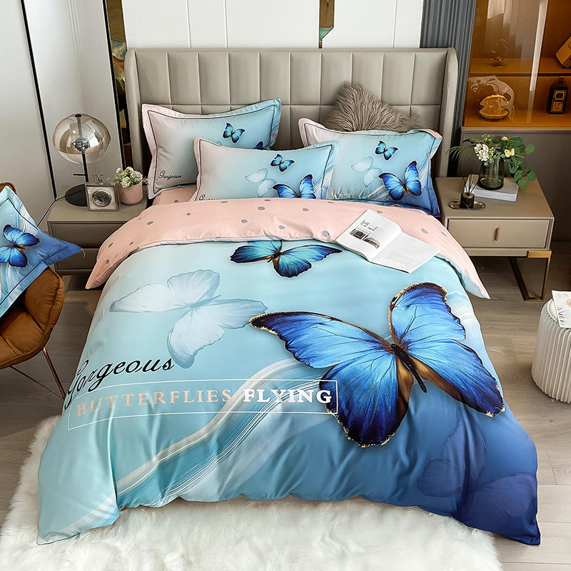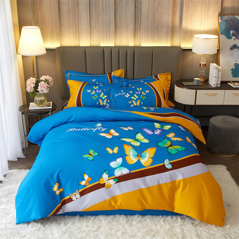 ชุดเครื่องนอนลายผีเสื้อหลากสี สไตล์ยุโรป ผ้าฝ้าย 100% 40S ชุดผ้าห่มหรูหรา ปลอกหมอน ขนาดควีนไซส์ ผ้าปูที่นอน