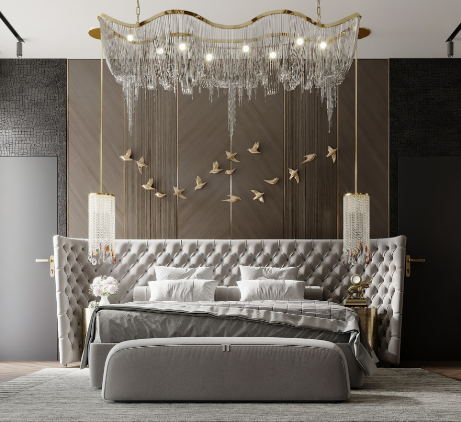 ชุดเฟอร์นิเจอร์ห้องนอนเตียงแบบอิตาลีชั้นบนเตียงขยายหัวเตียงรอยัลคิงควีนส์โครงเตียงสำหรับบ้าน