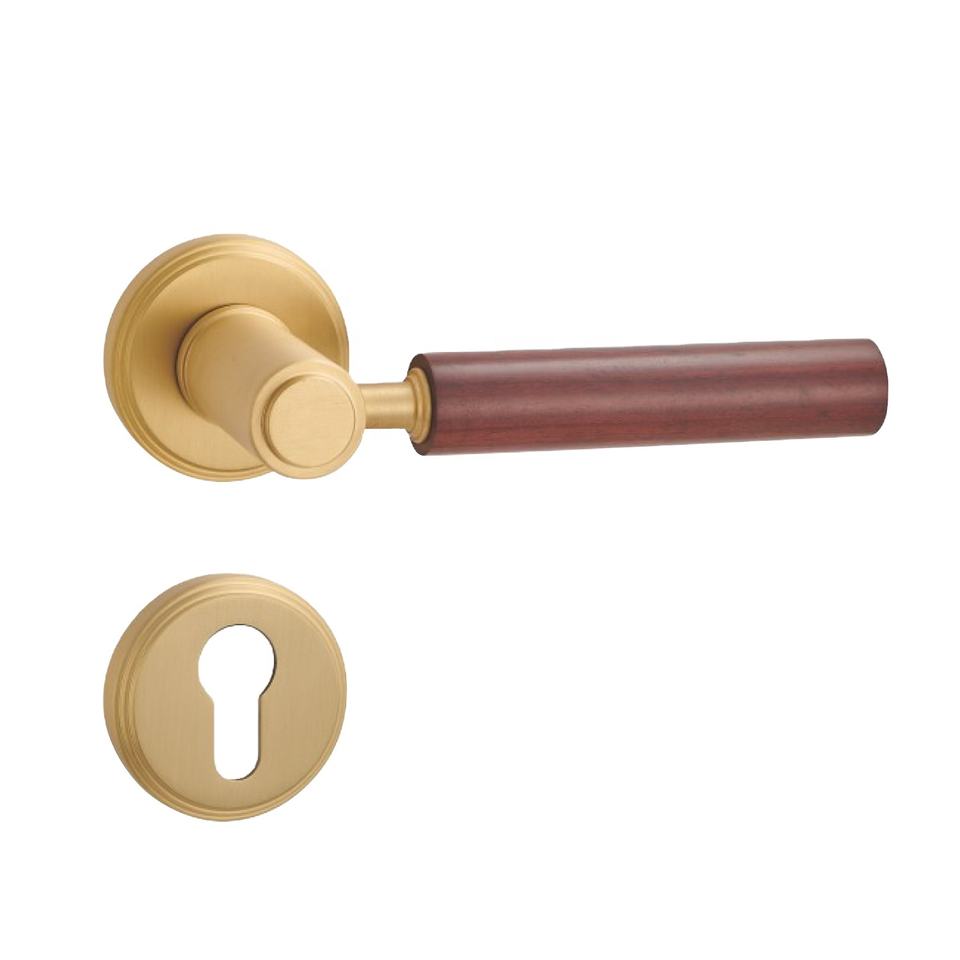 ห้องนอนมือจับพรีเมี่ยมทองเหลืองประตูไม้คันโยกจับล็อคชุด