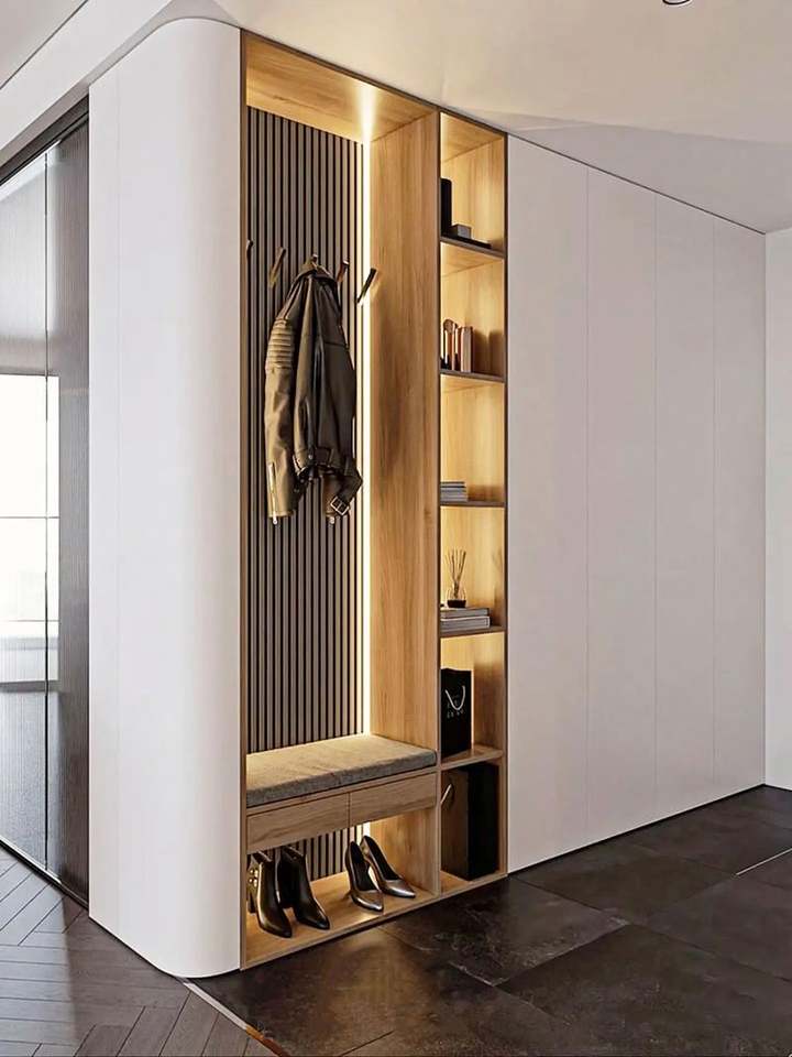 ตู้เก็บรองเท้าไม้จริงขนาดใหญ่สไตล์โมเดิร์นสำหรับห้องนอนพร้อมชั้นวางของ