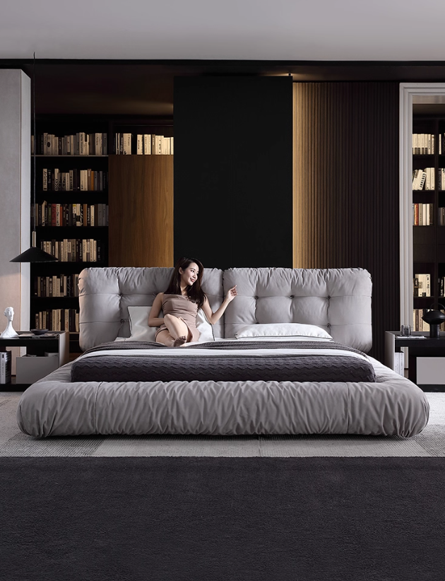 โครงเตียงสีขาว ชุดเตียงคิงไซส์ เฟอร์นิเจอร์ห้องนอน เตียงห้องนอนหรูหรา เตียงคู่ คิงไซส์ ควีนไซส์