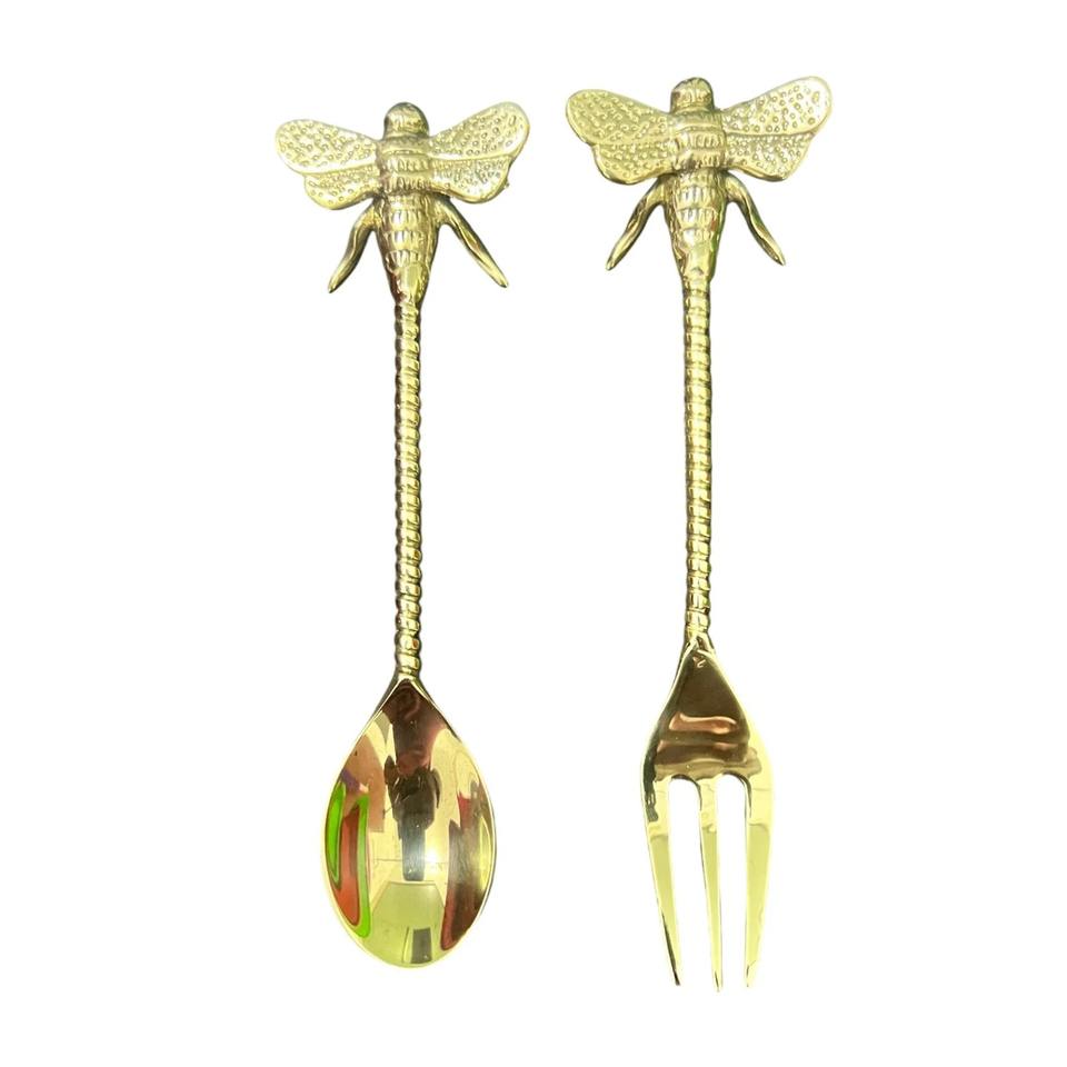 ชุดช้อนส้อมและส้อมด้ามสีทองดีไซน์ผึ้งเครื่องใช้บนโต๊ะอาหารสแตนเลสสตีลทนทานต่อการรับประทานอาหารในห้องครัวและของขวัญ
