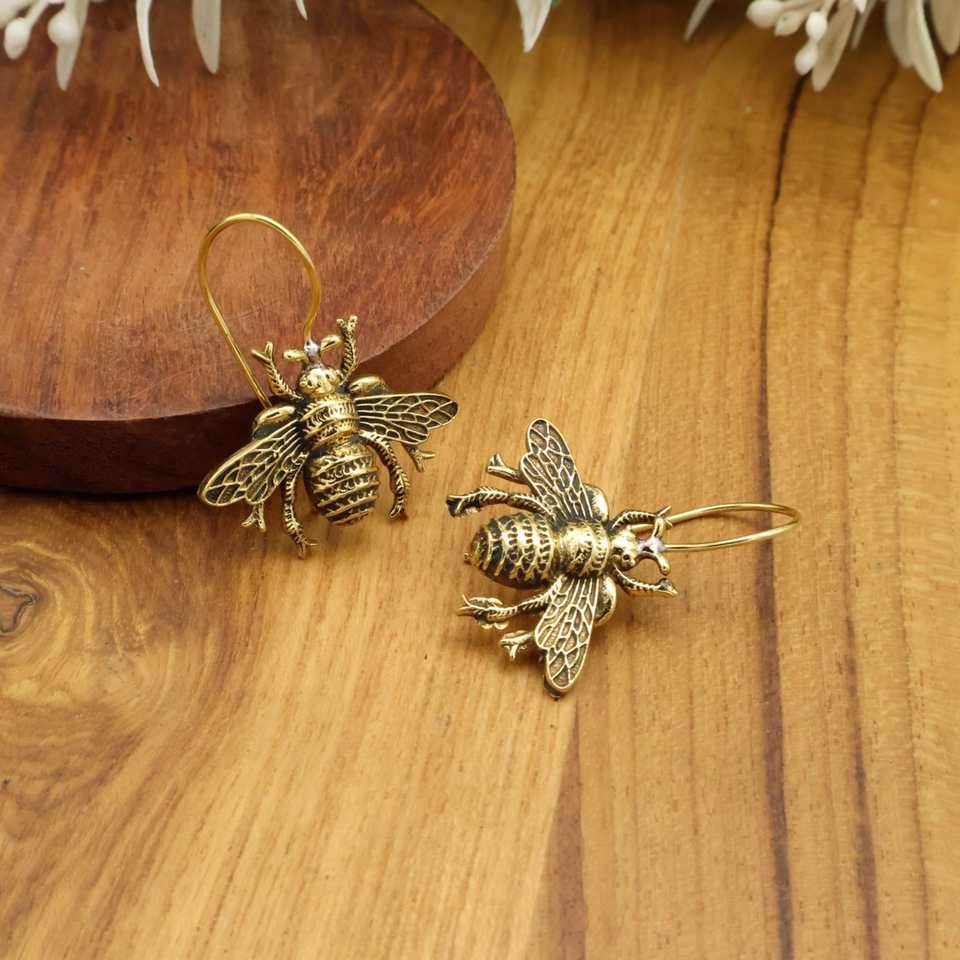 ต่างหูผึ้งต่างหูแบบห้อยทองหรือสีเงินเครื่องประดับ Boho ธรรมชาติต่างหูแมลงของขวัญสำหรับคนรักผึ้ง