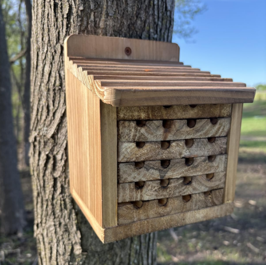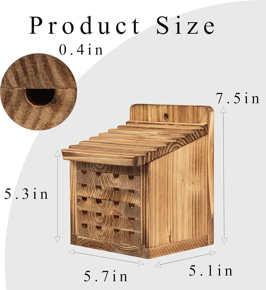 บ้านผึ้งไม้แบบใหม่พร้อมรูเจาะสำเร็จรูป โรงแรมผึ้ง กล่องรังแมลง สำหรับสวนภายนอก กล่องแขวนต้นไม้ ติดผนัง