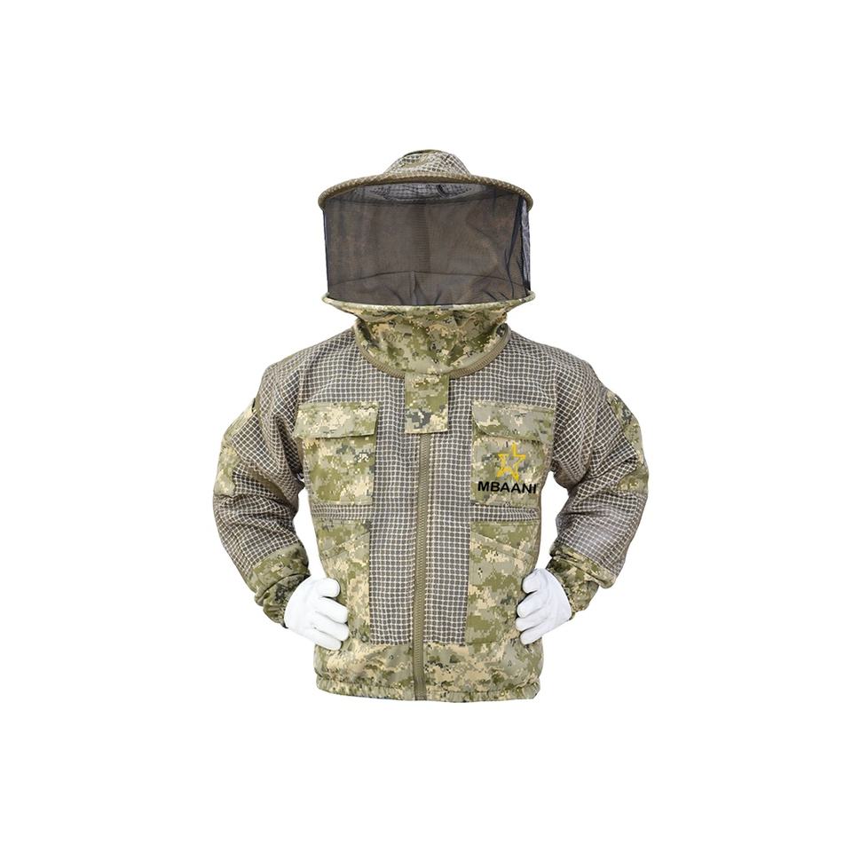 เสื้อแจ็คเก็ตผึ้งสามชั้น สีเขียว พร้อมผ้าคลุมหน้าแบบกลม ผลิตในประเทศปากีสถานโดย MBBANI Leather Industry