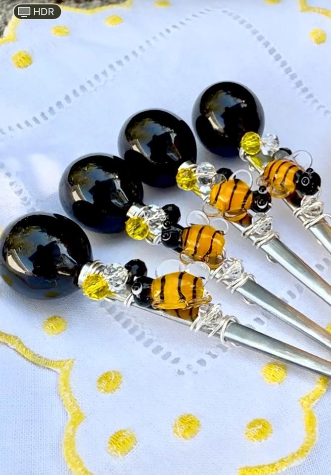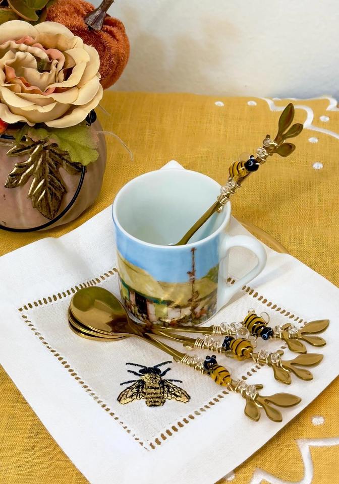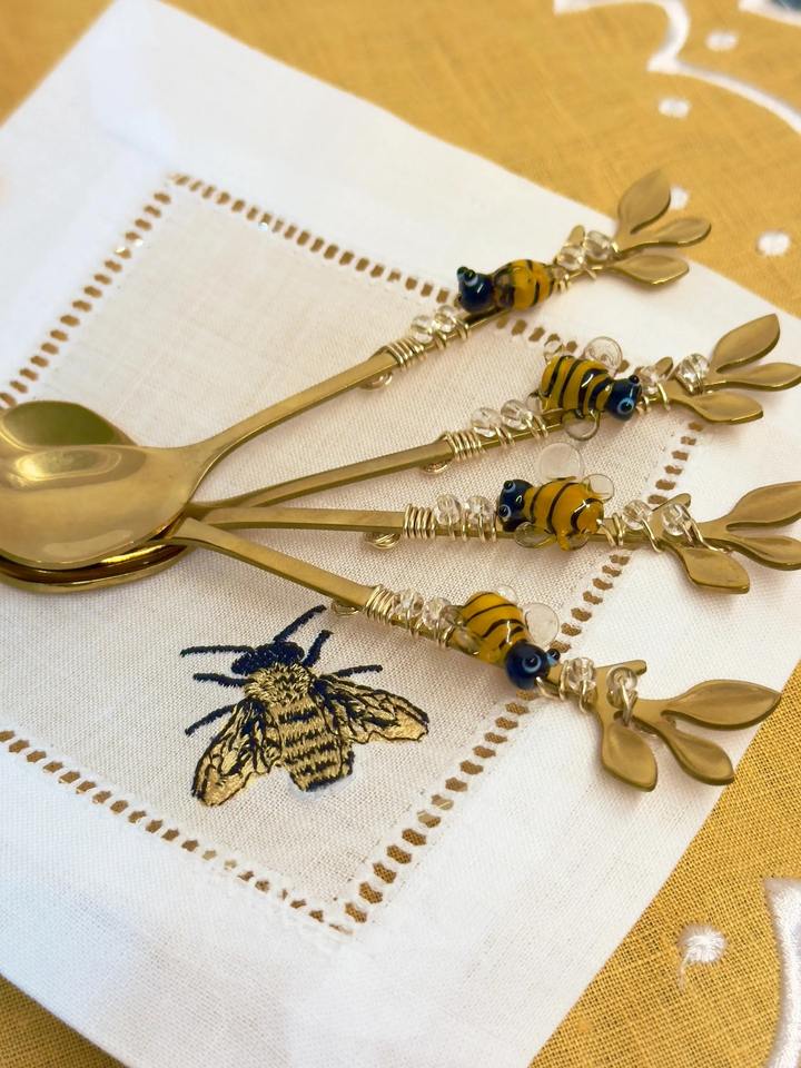 ชุดช้อนรูปผึ้งประดับด้วยใบไม้หรูหราเครื่องใช้บนโต๊ะอาหารสีทองหรือสีเงินที่ทันสมัยเหมาะสำหรับใช้ในห้องครัวและรับประทานอาหาร