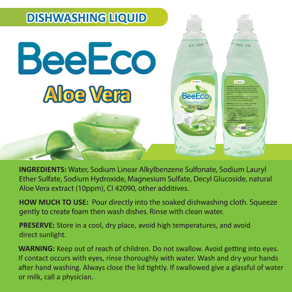 Beeeco น้ำยาล้างจานขวด750gx15น้ำยาล้างจานว่านหางจระเข้