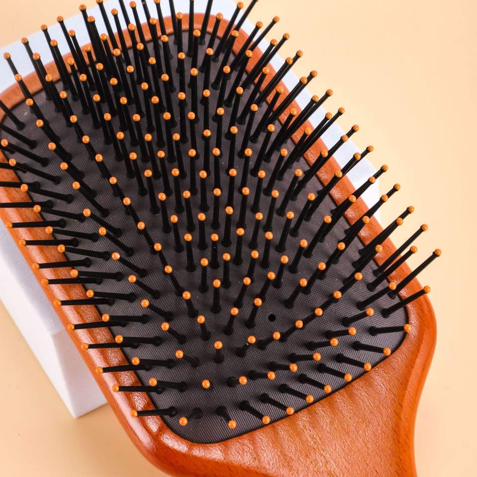 แปรงหวีผมไม้บีช ขนแปรงไนลอน แบบมีเบาะ ช่วยสางผมไม่พันกัน นวดหนังศีรษะ รูปทรงยาว