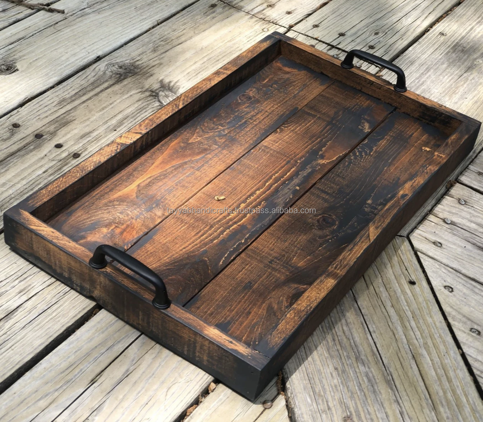 ถาดเสิร์ฟไม้บีชพร้อมหูจับสำหรับโรงแรมและร้านค้า ถาดตกแต่งสวยงาม