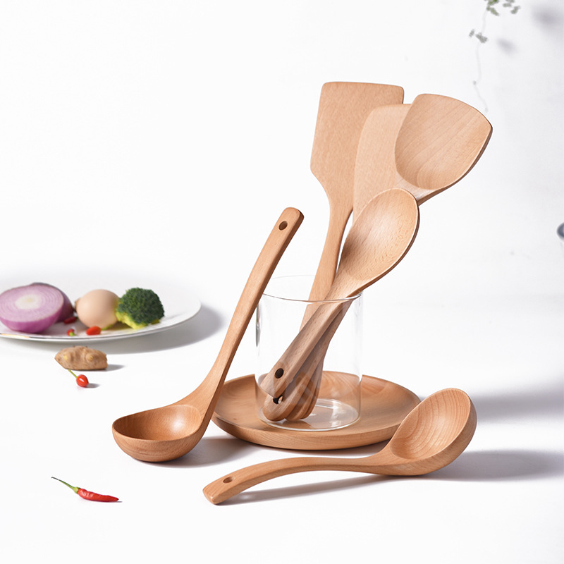 Cocina ชุดเครื่องใช้ในครัวไม้บีชช้อนไม้พายช้อนตะหลิวตักเดอโคซิน่าพร้อมโลโก้ออกแบบได้ตามต้องการ