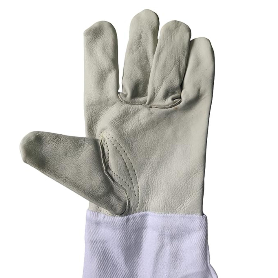 ถุงมือป้องกันการเลี้ยงผึ้งถุงมือหนังแท้ที่มีการออกแบบให้มีแขนยาวทำจากผ้าฝ่ามือและทนทาน