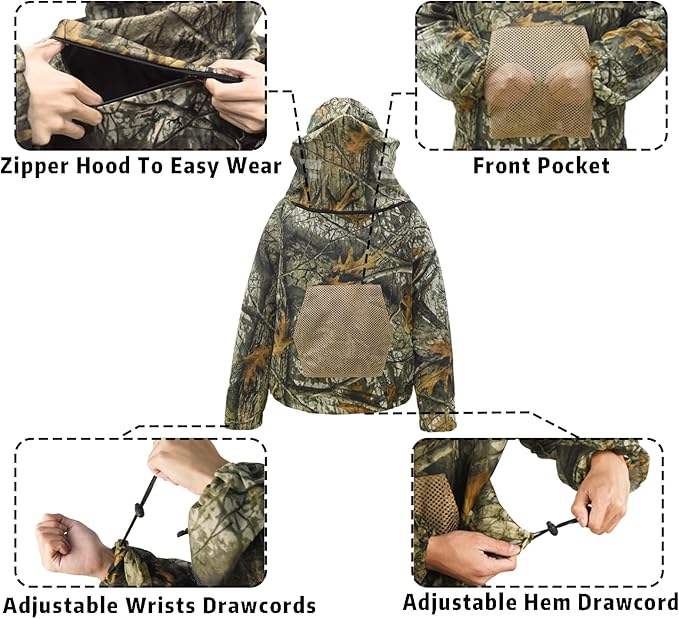 ชุดป้องกันแสงแดดกันยุงพร้อมฮู้ดระบายอากาศสำหรับล่าสัตว์และการเลี้ยงผึ้ง