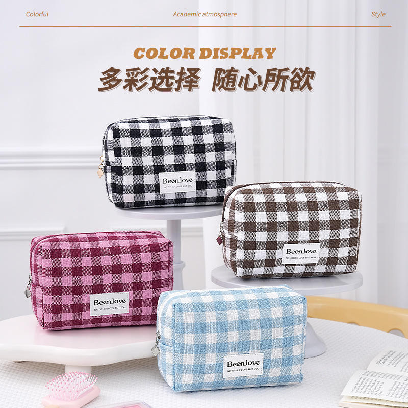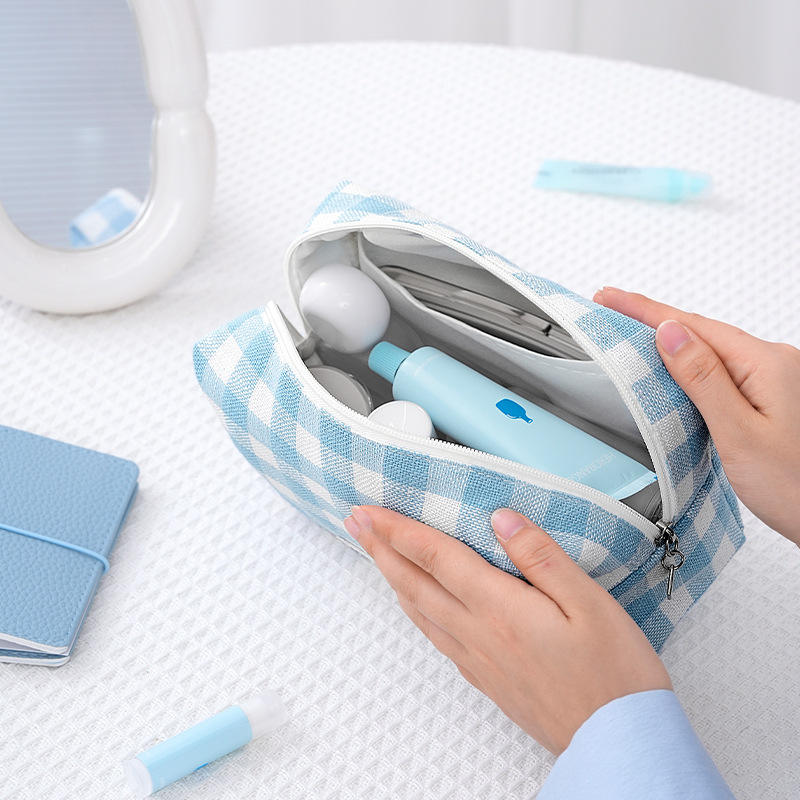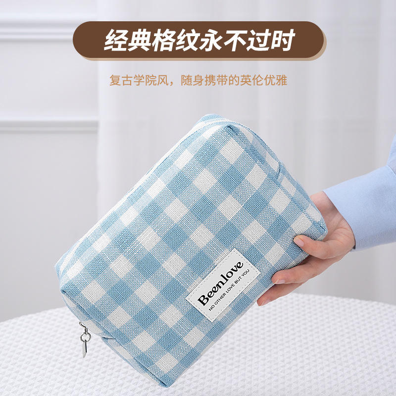 กระเป๋าเครื่องสำอาง Beenlove ทรงสี่เหลี่ยมผ้าแคนวาส สำหรับเดินทาง พร้อมซิปปิด สีฟ้า