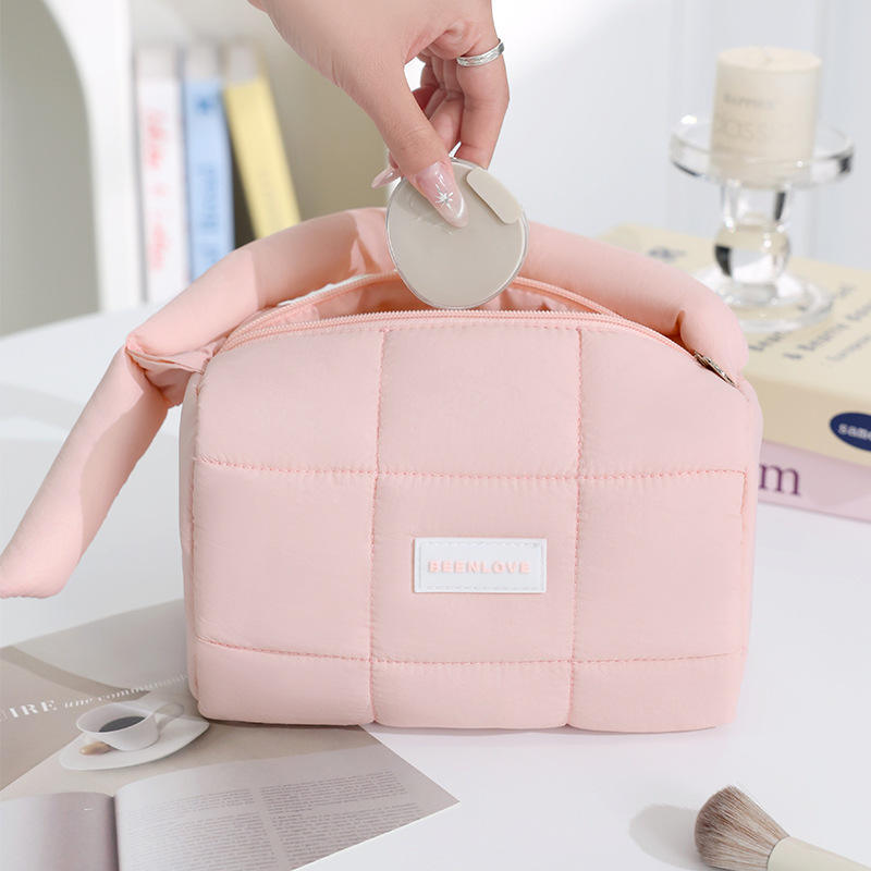 กระเป๋าเครื่องสำอาง Beenlove แบบเย็บลายสีชมพู ขนาดใหญ่ สำหรับใส่ผลิตภัณฑ์บำรุงผิวและลิปสติก