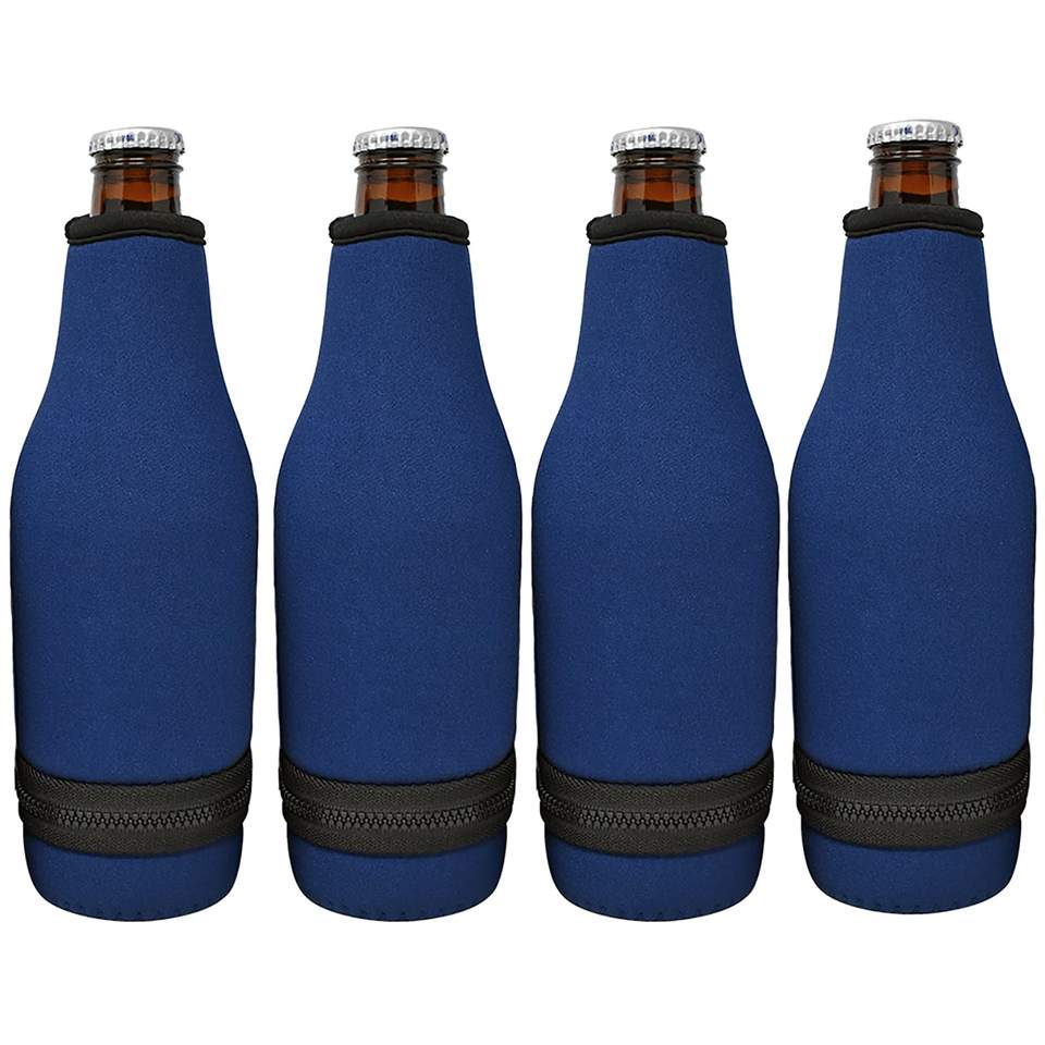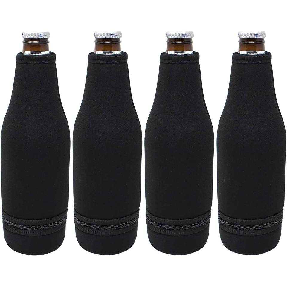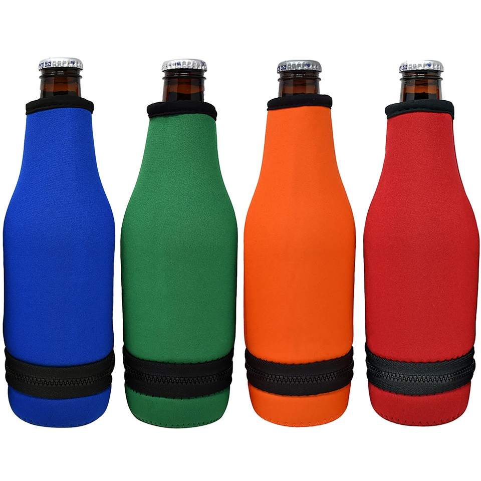 ปลอกหุ้มขวดเบียร์แบบซิปง่าย ปลอกหุ้มฉนวนนีโอพรีนสำหรับขวดคอยาวขนาดมาตรฐาน 12 ออนซ์ แบบปิดด้านล่าง