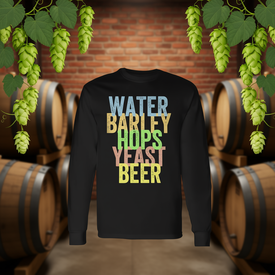 เสื้อยืดแขนยาวสำหรับโรงเบียร์เบียร์ส่วนผสมข้าวบาร์เลย์น้ำฮ็อพยีสต์