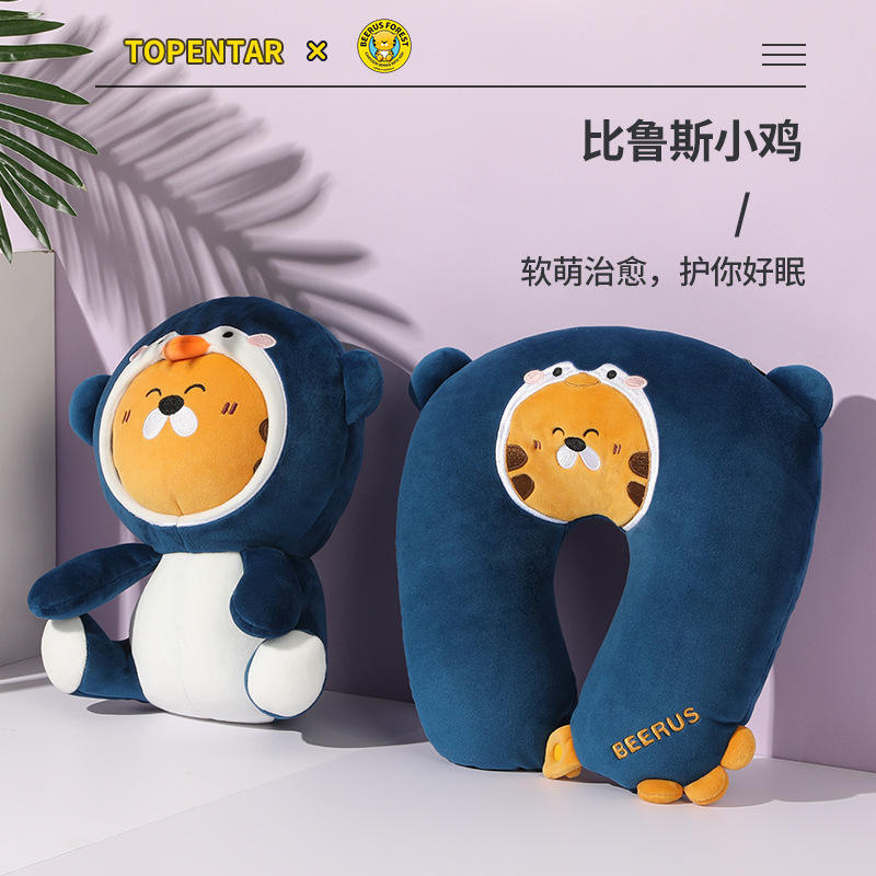 หมอนอิงรูปทรงตัวยู บีรุส ไทเกอร์ แอ็กซ์ ขนาด 30 ซม. สีฟ้า ทำจากโฟมเม็ดบีดส์ ใช้ได้สองแบบ ทั้งหมอนหนุนและหมอนรองคอสำหรับเดินทาง