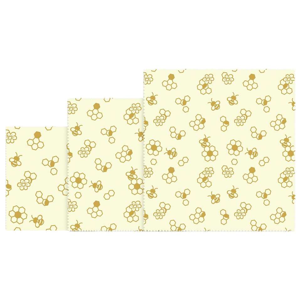 ชุดผ้าห่อขี้ผึ้ง 3 ชิ้น ขนาด 18x20 ซม. 25x28 ซม. 33x35.5 ซม. ฝาครอบอาหารแบบใช้ซ้ำได้สำหรับเก็บอาหารในครัว
