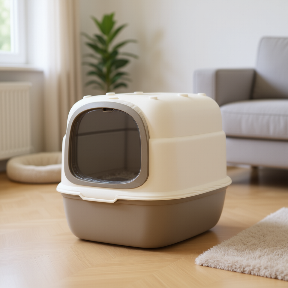 กระบะทรายแมว Beetle Cat ทรงสี่เหลี่ยม ปิดมิดชิด ทำจากพลาสติก สีเทา ใช้งานแบบแมนนวล
