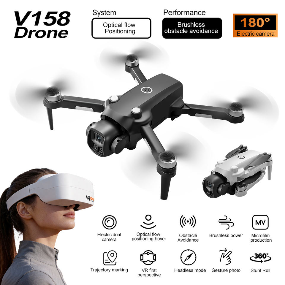 โดรนสำหรับมืออาชีพ รุ่น V158 ความละเอียด 8K พร้อมแว่น VR กล้อง 4K HD มอเตอร์ไร้แปรงพับได้ ระบบหลบหลีกสิ่งกีดขวาง FPV ส่งตรงจากโรงงาน