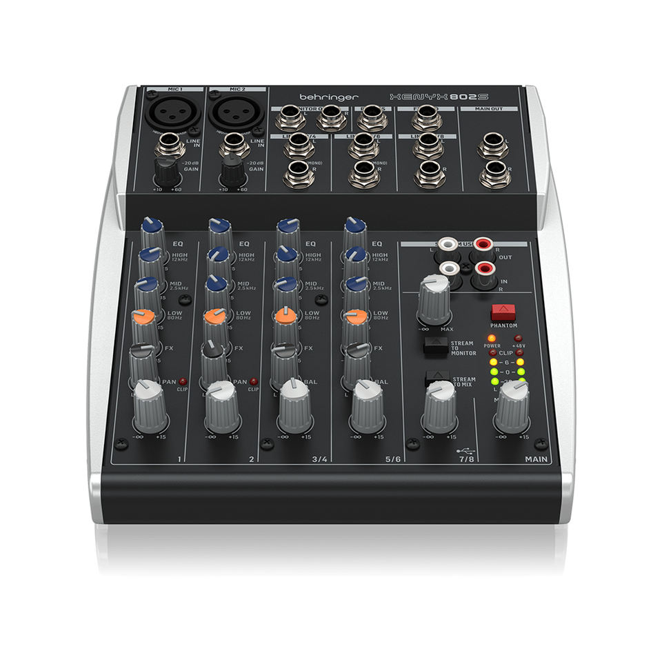 Behringer XENYX 802S 8-channel Analog Mixer with USB Streaming Interface 24-Bit Pa System Live Sound Podcasting