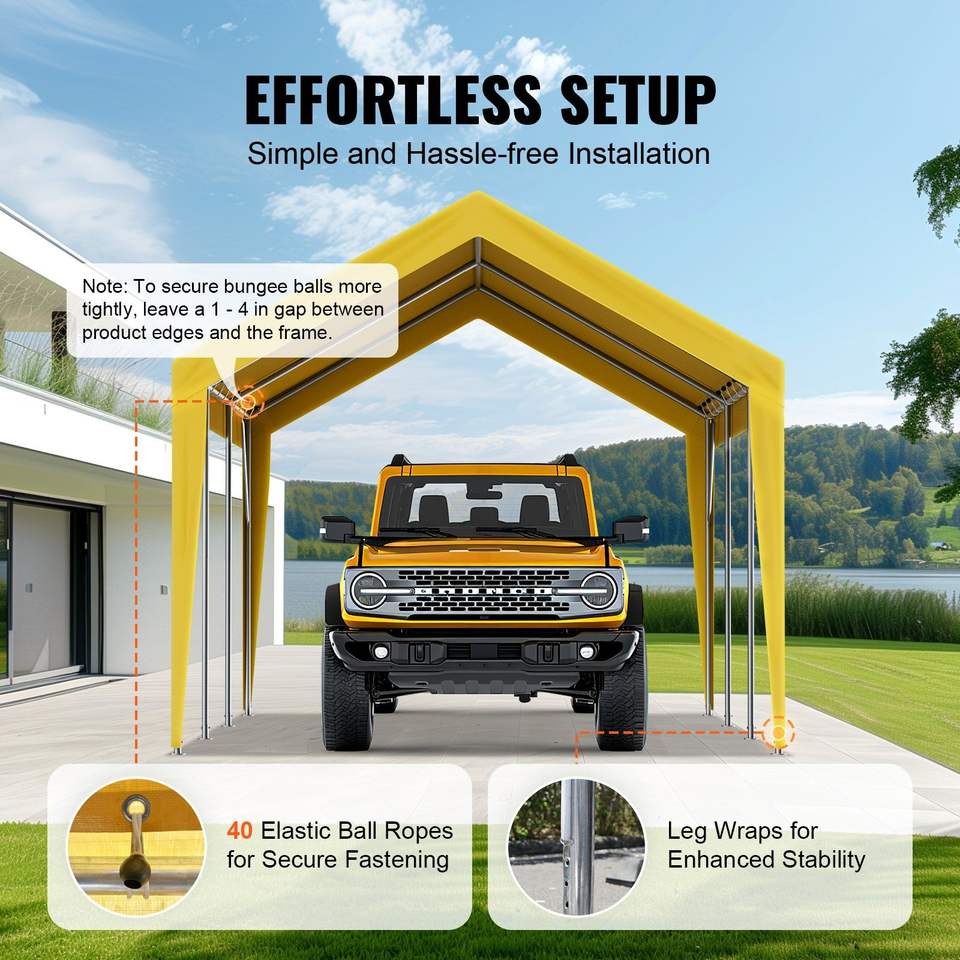 Beige 10x20 ft Heavy-Duty Waterproof UV Protected Carport Replacement Canopy Cover Easy Installation Ball Bungees (Frame Not