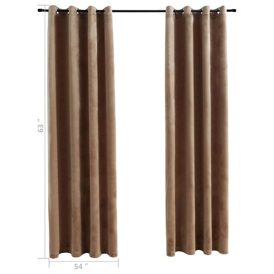 Beige 54"x63" Velvet Blackout Curtains with Rings 2-Piece Set