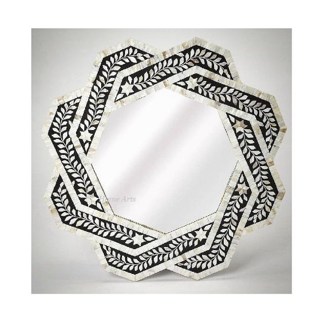 กรอบกระจกสีเบจและสีดำกรอบกระจกไม้คุณภาพพิเศษพร้อมงานมุก
