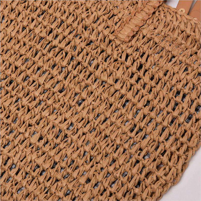 กระเป๋าชายหาดสีเบจในมือทอหวายสำหรับผู้หญิงฤดูร้อน2021