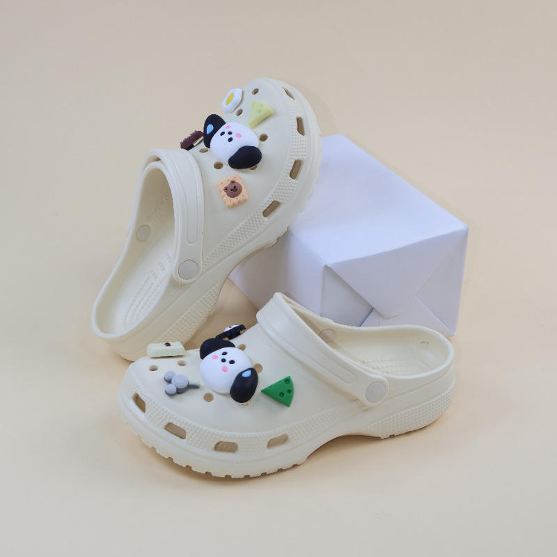 รองเท้าแตะสุนัขการ์ตูนสีเบจสำหรับผู้หญิง ฤดูร้อน พื้นนุ่มกันลื่น ปิดนิ้วเท้า สวมใส่สบาย เหมาะสำหรับชายหาดและกิจกรรมกลางแจ้ง ใส่ได้ทุกฤดู