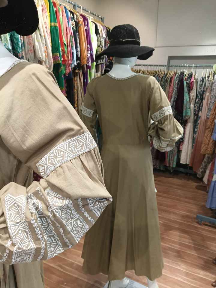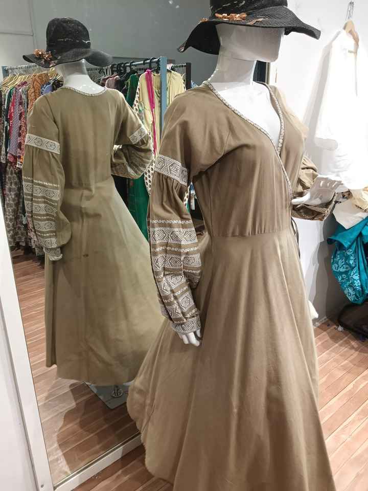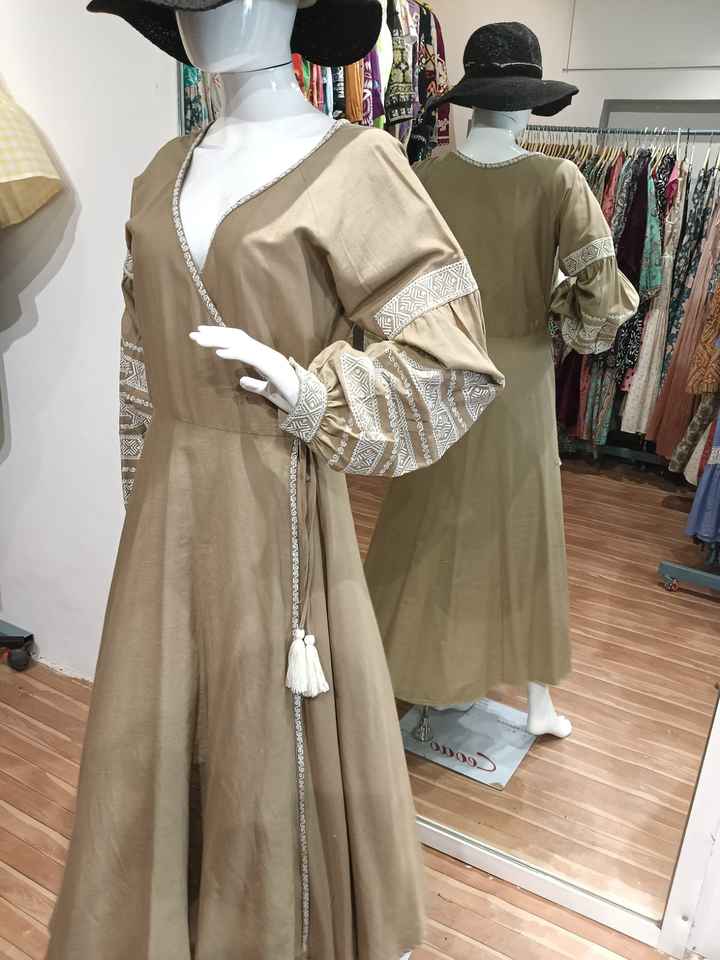 เดรสยาวสีเบจ ปักลายดอกไม้ คอวี แขนพอง ผูกเอว สไตล์ลำลอง แฟชั่นฤดูร้อน สำหรับผู้หญิง แขนยาว สไตล์เรียบร้อย