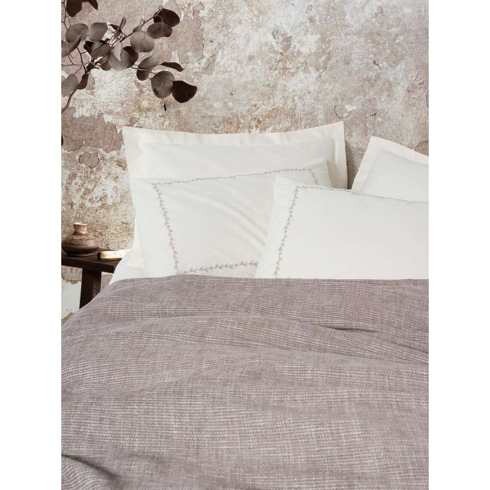 ชุดผ้าปูเตียงสองชั้นลายปักสวยงามกล่องผ้าฝ้ายสีเบจ