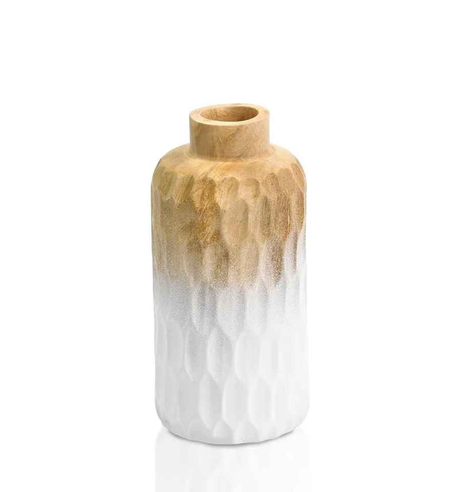 แจกันดอกไม้ตกแต่งบ้านดีไซน์สีเบจทำในอินเดียสไตล์โบฮีเมียนแจกันดอกไม้ทำด้วยมือทำจากไม้แจกันดอกไม้ทำด้วยมือ